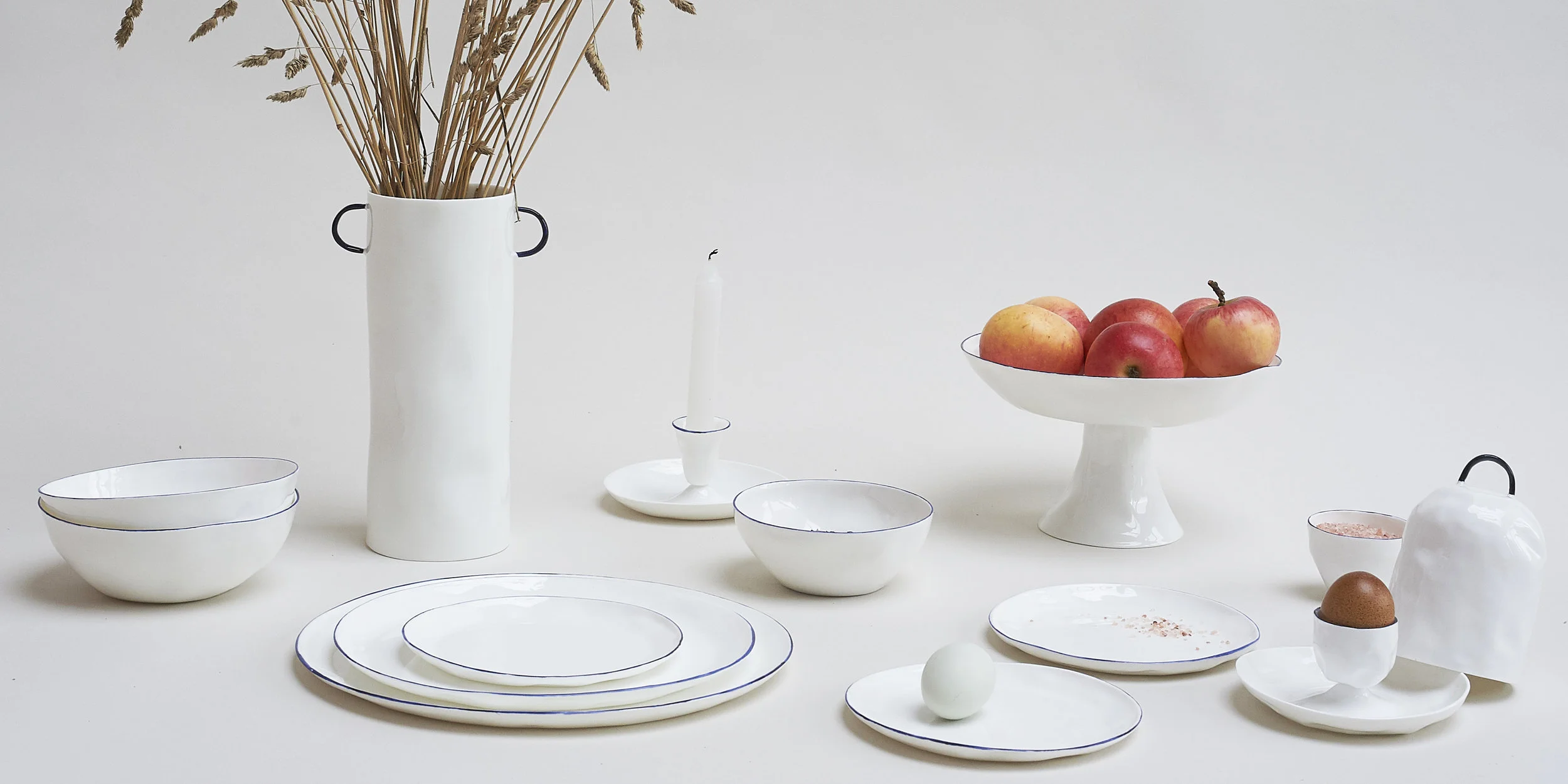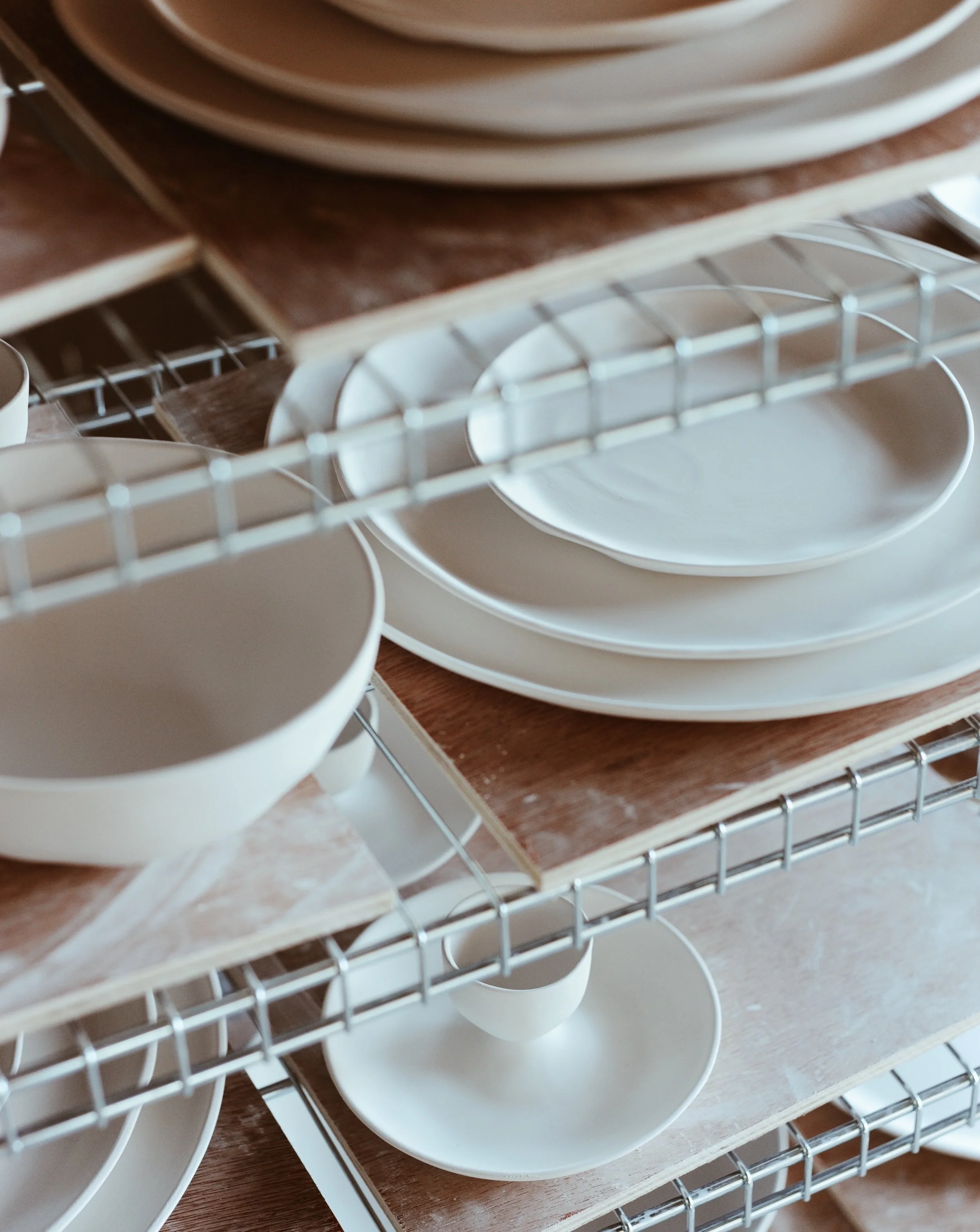 Our fine bone china collection grew organically around our 7oz coffee mug, which was the first object we designed and made. It was joined by a tea mug, an espresso cup, then milk jug and tea pot, butter dish, then plates and bowls and so on, and now it’s a fairly complete tableware collection — although there are always other items we want to make to join the collection (serving bowls, say, or more uses for bone china beyond tableware).